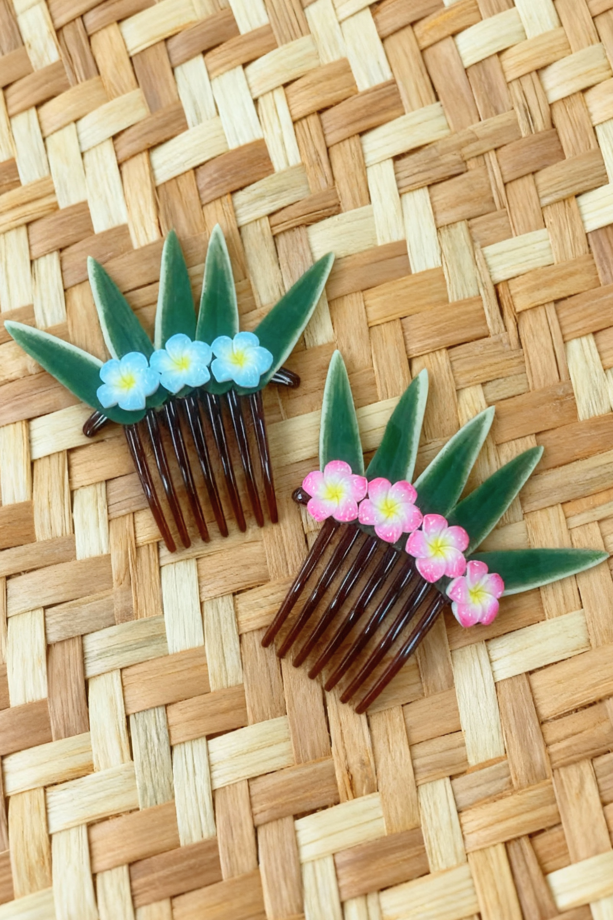 + Standard One-size Hair comb with beautiful Pua Shaped acryllic embellishments and leaf foliage