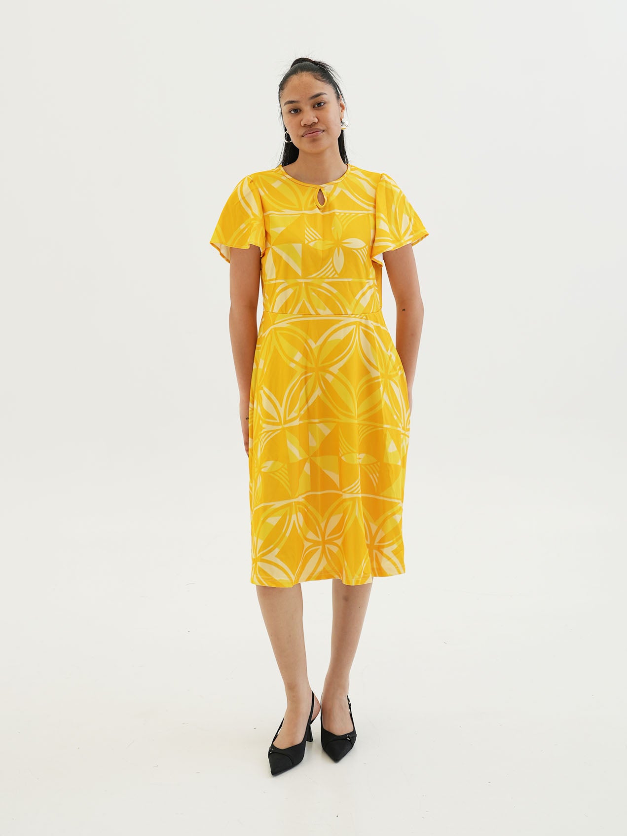 Make it match in Panikeke style with our new Panikeke Kaiga collection. Available in the stunning TE APA PRINT - in a gorgeous yellow colourway in the exclusive Ila Keyhole midi dress style! Complete the look with our Panikeke accessories or MAKE IT MATCH with our matching mens and boys shirt or girls dress to complete the family set!